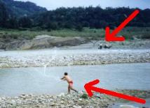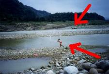 相片中下方的人正拋出漁網,上方遠處則是釣魚的人,當我正喘口氣的時候,那個人居然突然轉身,鐵青著臉瞪著我說: