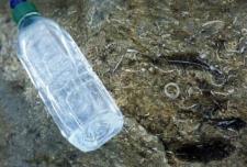我撿到的是一塊比手掌大些的石塊,中間夾雜著密密麻麻的甲殼貝類,驚喜之下就真的邊走邊找石頭了,後來走著走著真的找到大的化石樣本了,為了顯示實體比例大小,我還放一只寶特瓶在充滿化石的大石頭上拍攝相片: